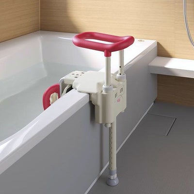 浴槽のふちに取り付け、浴槽への出入りと浴槽内での姿勢の保持のためご使用ください。