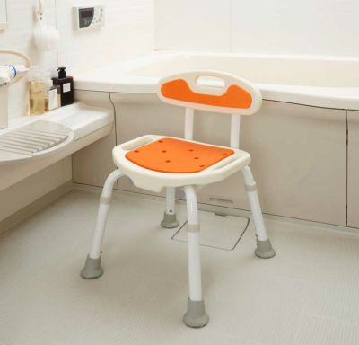 福浴コンパクトシャワーチェア 背もたれ付きは、日本の浴室に配慮したコンパクトサイズのシャワーチェア・介護入浴用椅子です。