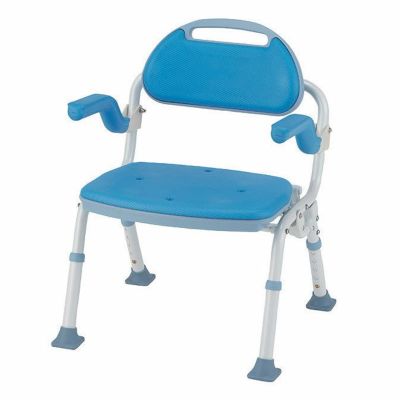 折りたたみシャワーベンチ SOFTEKソフテック 背もたれ・ひじ掛け付きは、やわらかクッションで座り心地の良いシャワーベンチ。メーカー比22%の柔らかさです。