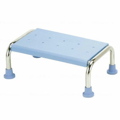 お風呂の中でもはっきり見やすいライトブルーです。 脚ゴムが吸盤型になっており、しっかりと固定できるので安心、安全に使用できますね。 丈夫でさびにくいステンレス製です。 ゆっくり両足を乗せられる天板で、お風呂の中でも外でもどちらでも使用できます。