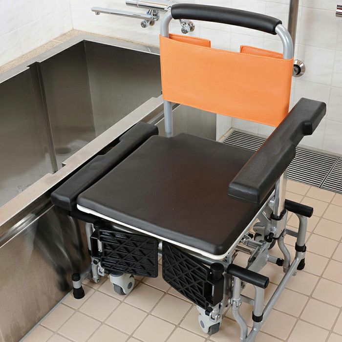 病院・施設からご家庭・在宅介護用まではばひろくお使いいただけるシャワーキャリー・お風呂用車椅子です。