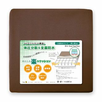 「あんしん楽らクッション」の「全面防水タイフ」は、体圧分散し 疲れにくく、長時間快適な座り心地が続きます。 カバー全面が防水仕様になっているのでもしもの時も安心です。 ※防水仕様はファスナー及び縫製側面は除く