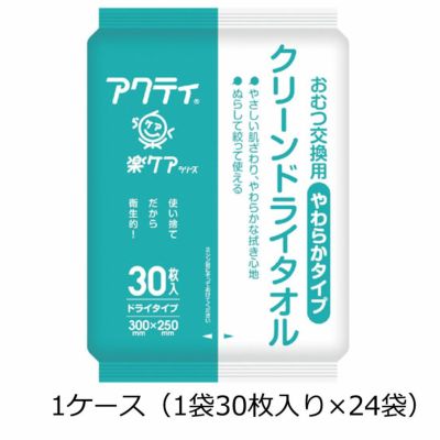 陰部から全身清拭まで幅広く対応する清拭用ドライタオルです。 やわらかな肌触りのやわらかタイプです。 お得な1袋30枚入り×24袋の1ケースでの販売です。