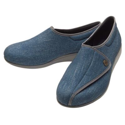 面ファスナーが大きくガバッと開き、脱ぎやすく履きやすい、男性向けシューズ。