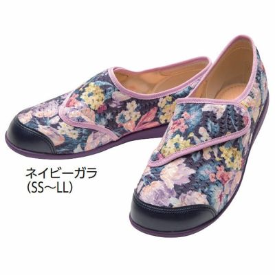 面ファスナーが大きくガバッと開き、脱ぎやすく履きやすい、女性向け屋内シューズ。 つま先ゆったり設計で、足の形に近い"オブリーク形状"にすることにより、つま先のしめつけを軽減しています。 つま先を約22mm巻上げ、つまずきを防止するので屋内でも、つまずきにくく安心ですね。 ゆったり幅広な5Eサイズ。 水に浸けて丸洗いができるので、靴や足を清潔に保て、長くご愛用いただけます。 足の負担を軽減する「軽量設計」。 抗菌・防臭加工つきです。 ソールの外側を2mm高くすることで、内側への傾斜をつくり、足の動きをコントロール。 表面に水を弾く、撥水加工つきです。