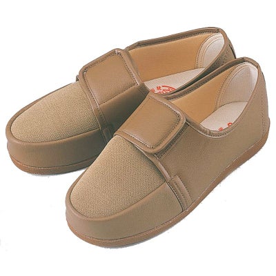 甲部が左右に開き、甲まわりの大きさを調整できます。装具の上から着用するとき等に便利で多目的な靴です。
