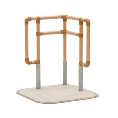 ベースサイズがひと回り小さくなり(メーカー従来品 比較)狭い場所への設置が可能になりました。 膝当てもコンパクトになり、小柄なご利用者様でも手すりがつかみやすくなりました。 ご利用者のニーズに応じ膝当ての取付位置が変更 できます。