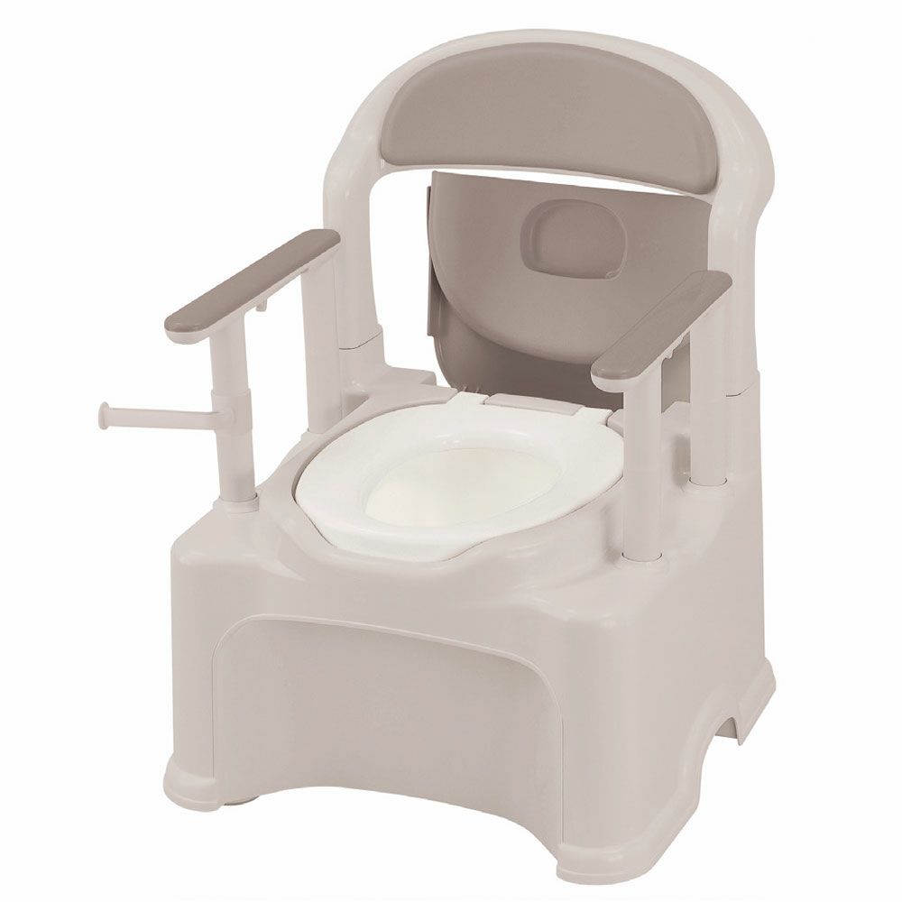 肘掛けがフラットになるので移乗が楽なポータブルトイレです。