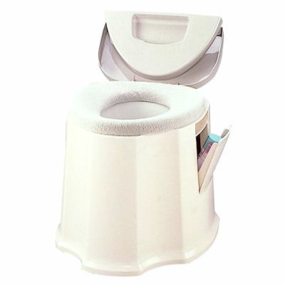 色調は落ち着いたベージュ色です。和室、洋室にもマッチします。 上蓋・便座は簡単に着脱ができます。お手入れの時も外して洗えるので、とても衛生的ですね。 本体側面にポケットが付いているので排泄時に必要な備品を収納することができます。 本体のバケツ受け周辺に溝を設けているので、尿が外へこぼれにくい構造になっています。 上蓋の開閉は折りたたみ式で、便座はゆっくりと閉まるオイルダンパーを採用。 便座は抗菌加工便座で衛生的ですね。。 バケツは音のしにくい形状で、バケツ蓋はつかみやすい取っ手になっています。