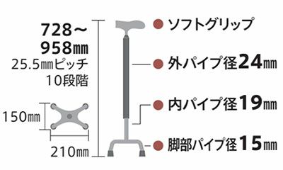 他の画像を見る ソフトグリップ スリム伸縮アルミ杖 定価 ¥ 6,600 スクリオ販売価格 ¥ 5,280 税込 パイプ(直径1.8cm)が細い分軽量になっていて、長時間のお出かけでも体の負担がかるくなります。 お気に入りに登録する