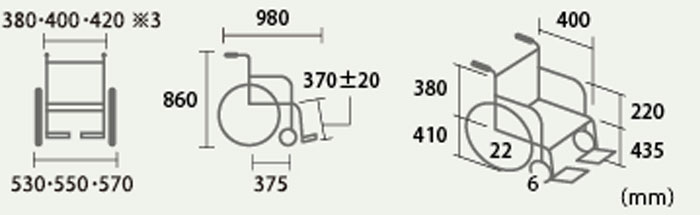 シート幅は、40cm(肘掛け内々)で全幅わずか55cmとコンパクト。場所を選ばずスイスイ通ることができます。