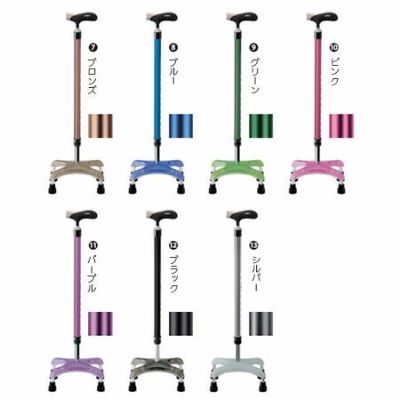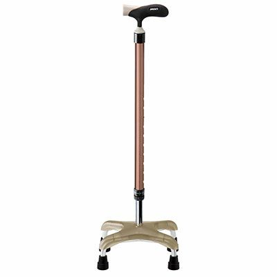 一本杖よりも、一層の安定を求めている方にオススメです。 体重をかけても倒れないので、立つ姿勢の悪い方の歩行訓練に適しています。また、足元には人の足や家具などにぶつけても傷つけにくいソフトカバーを使用しています。
