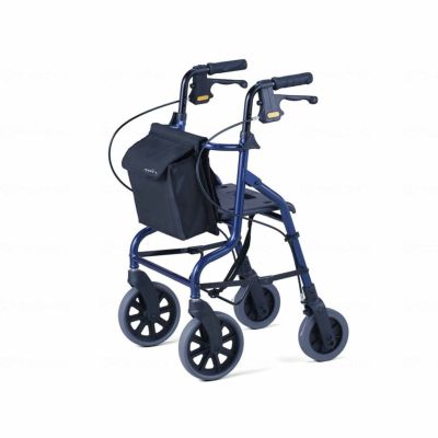 は、持ち物を収納しやすいポケット付きバッグといつでも座れる座面の着いた歩行車です。