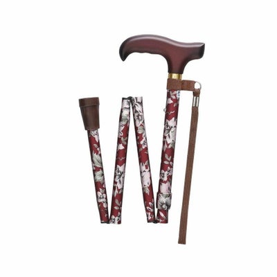 ステッキベーシック折畳S花柄赤 折りたたみ杖 は、携帯に便利な折りたたみ式のベーシックな花柄の伸縮杖です。