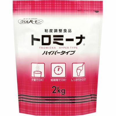 嚥下補助とろみ剤 トロミーナ ハイパータイプ 2kg は、時間経過による変化が少なく粘度が安定します。抜群の溶け性で誰でも簡単にとろみをつける事ができます。