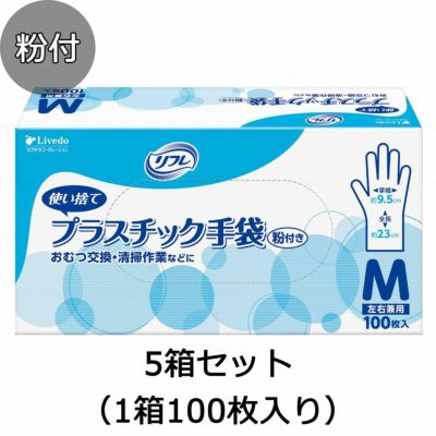リフレ プラスチック手袋 粉付き 5箱セット(1箱100枚入り) 使い捨て手袋