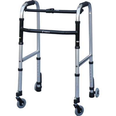 スリムフレームウォーカー キャスターモデル WFS-4968SW3GWは、6段階の高さ調節が可能なスリムサイズの日本人の体格に合わせたスリム仕様歩行器です。