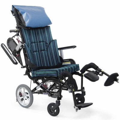 ティルト・リクライニング車椅子 くるーん KPFK-12は、座位保持を追求!! ティルトとリクライニングがひとつになった〈新リクライニング機構〉ぴったりフィット機構でお尻が前にズレにくいリクライニング車椅子です。