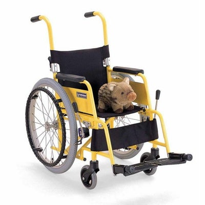 子供用車椅子(自走用) KAC-N32脚部標準 介助ブレーキなしは、子供用として座幅をせまく、前座高を37cmと低くしております。後輪が大きいので少ない力でも動かせる子供用の車椅子です。 アルミ製なので軽くて丈夫!お子様の自立を応援します。