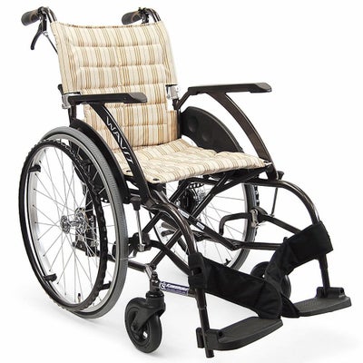 アルミ製次世代型標準車椅子 WA22-40(42)A エアタイヤ仕様 自走用は、従来の座幅を確保しつつ、全幅をスリム化。操作性と旋回性の向上を図りました。