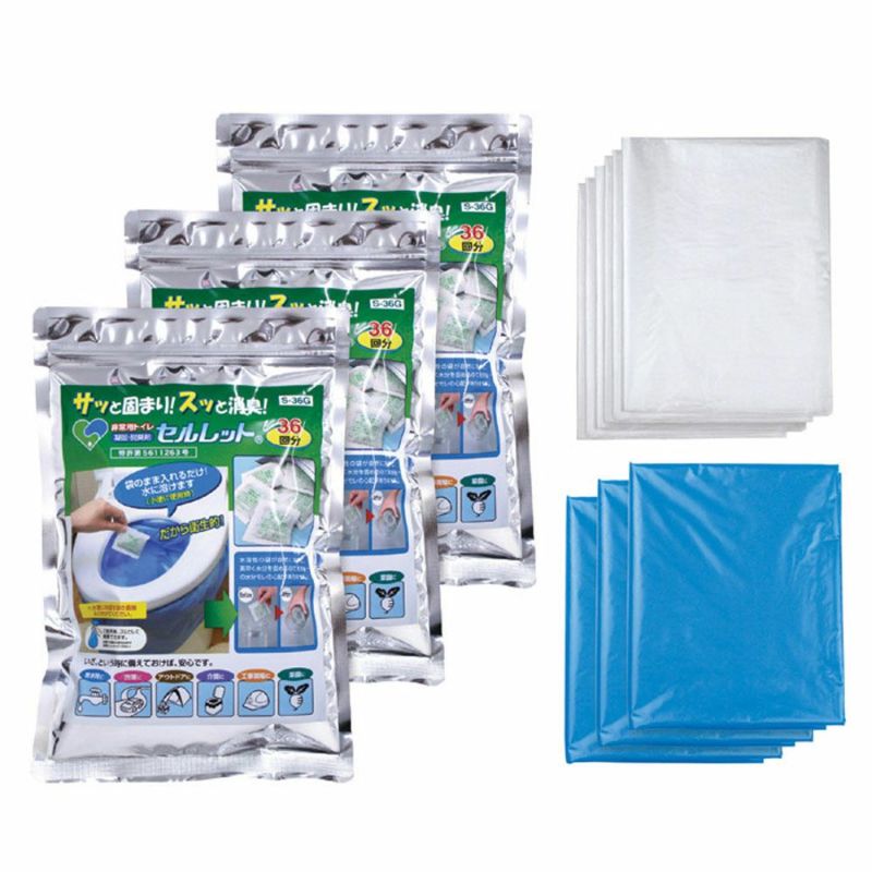他の画像を見る 非常用トイレ セルレット S-36F 36回分セット(凝固・脱臭剤×36個、トイレ袋×36枚、透明袋×3枚) スクリオ販売価格 ¥ 6,380 税込 サッと固まり、スッと消臭する非常用トイレセットです。 お気に入りに登録する