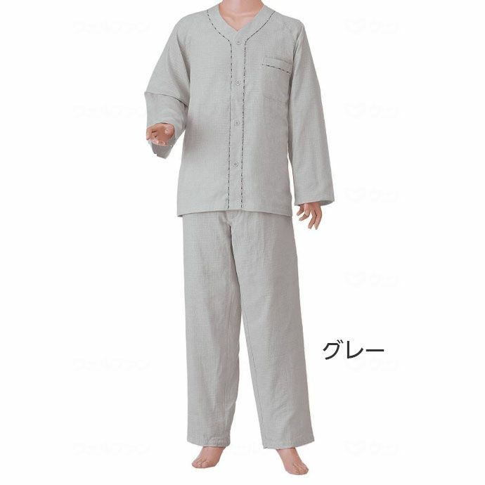 他の画像を見る 紳士用楽らくガーゼパジャマ 半袖 No800 春夏用 定価 ¥ 7,480 スクリオ販売価格 ¥ 6,490 税込 前立てはボタンの代わりに丸型マジックを使用している、半袖の紳士用パジャマです。 お気に入りに登録する