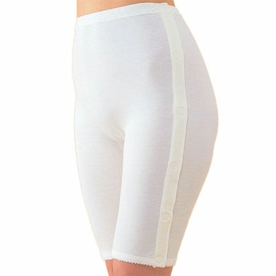 5分パンティー両横開き 婦人用 No.58 (2枚セット) M/Lは、ボタンをかける手間を全面解消した「丸型マジックボタン」採用。脱いだり着たりの、毎日の動作が簡単にできるよう、ボタンやデザインにしっかり工夫を凝らしています。