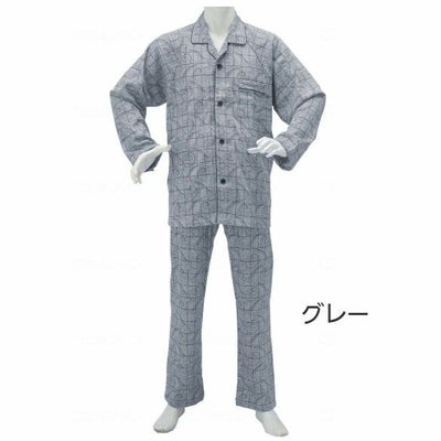 紳士楽らくパジャマ ペーズリー柄 No805 袖口丸形マジック付き 通年用は、ボタンの代わりに丸型マジックテープで楽に着替えができます。ねじれにくいウエストゴムやラグラン袖が快適です。