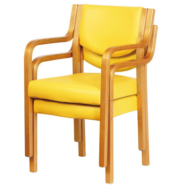 木製チェア MC-510NA 介護施設向けダイニングチェアは、座面はクッション性のあるウェービングテープ仕様です。4脚までスタッキング可能な施設向け椅子です。