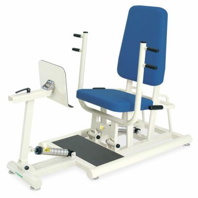 チェストプレスとレッグプレスを複合した片側抵抗の運動療法マシンです。