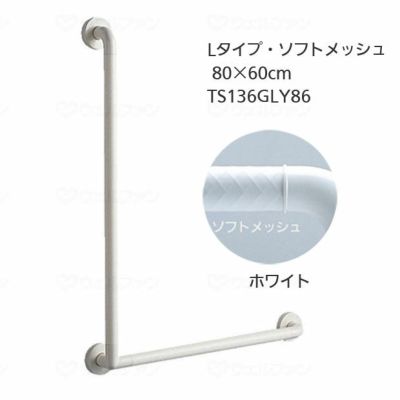 TOTOインテリア・バー Fシリーズ(浴室用手すり)Lタイプ・ソフトメッシュ 80×60cm TS136GLY86は、使い勝手や安全性に配慮した「滑りにくい」「握りやすい」浴室手すりです。(Lタイプ 80×60cm)