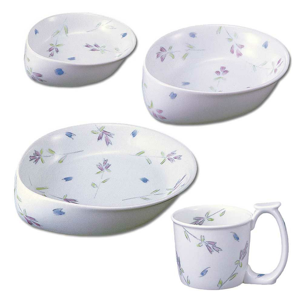 テレサシリーズ 持ちやすく食べやすい形の介護食器 4点セットは、持ちやすくて食べやすい形の食器4点セットです。