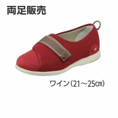 ムーンスター パステル405 軽量介護靴 足囲4E 21~25cm 両足販売 外反母趾・むくみに は、片手で簡単にあいて着脱がとても楽です。リハビリシーンも想定した、室内、室外どちらでも履ける軽量設計のシューズです。ワインカラーが素敵ですね。[両足販売]