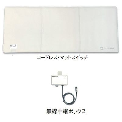 ベッドの横に敷くマット状のセンサーです。 折り畳みができて設置・収納が簡単。 センサーはケーブルのないコードレスです。ひっかけ事故や断線事故ゼロで安心です。 ナースコール端子につなぐだけ。工事や設定が不要です。