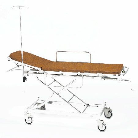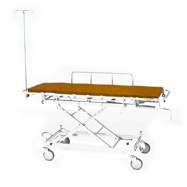 背上げ機構のついた、クランクハンドル手動式の昇降ストレッチャーです。