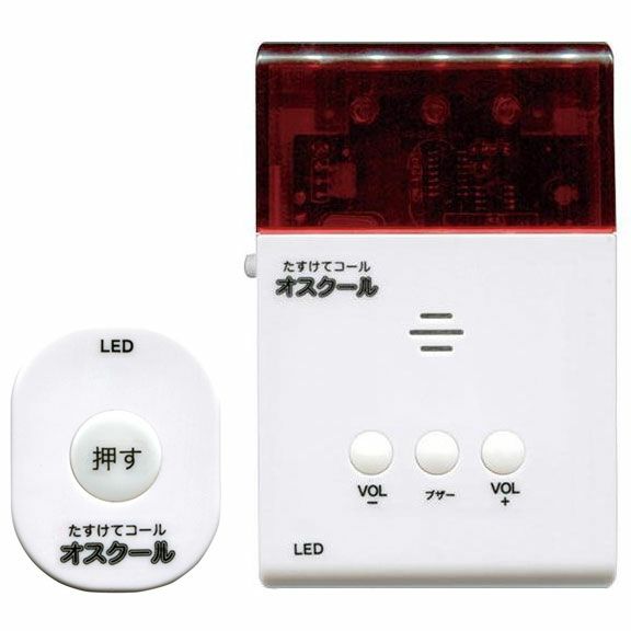 他の画像を見る クーポン対象 簡易緊急通報システム オスクール TVBC-36 介護用呼び鈴・呼び出しベル スクリオ販売価格 ¥ 8,800 税込 無線到達距離:約100メートル体の具合が悪くなったとき押すと、玄関先等に掛けた受信機のライトが点滅とともにブザーで周りの人に緊急を知らせることのできる簡易緊急通報システムです。 お気に入りに登録する