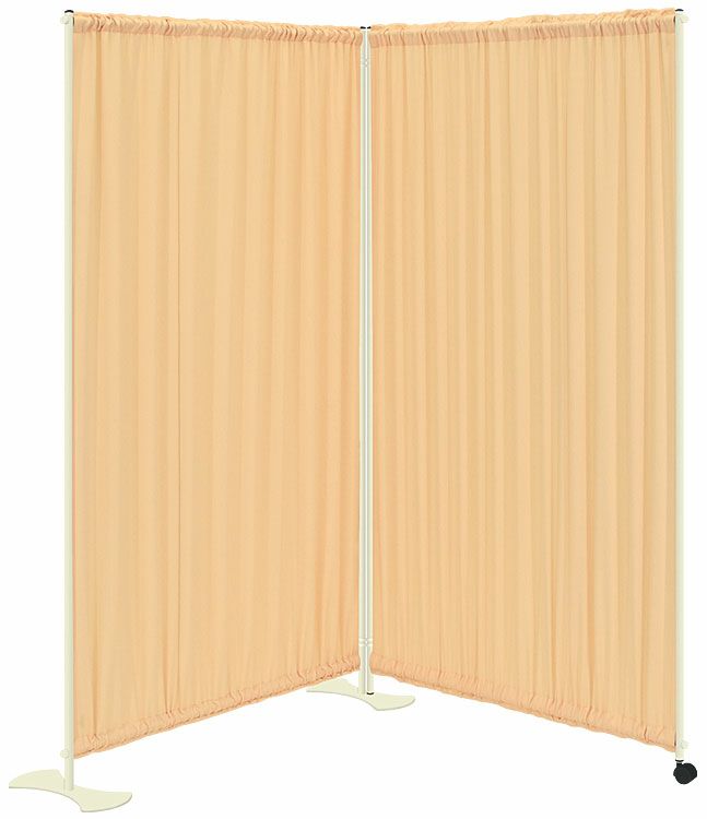 自由な角度に調節できるキャスター5個付きの連結ダブルスクリーンです。防炎・防汚・制菌(SEK)のカーテン生地は丸洗いOKで、清潔にお使いいただけます。