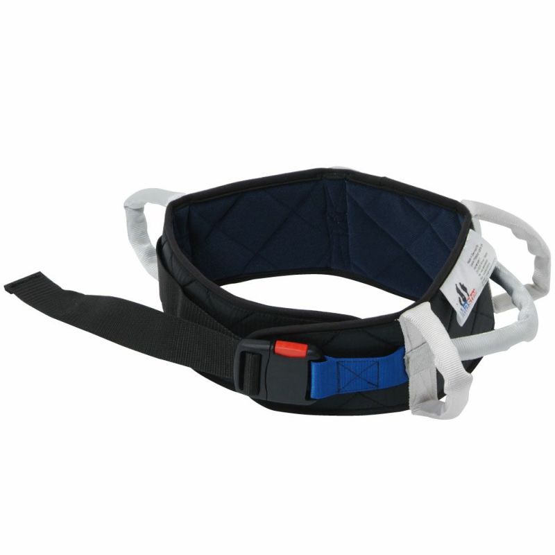身体にしっかりと装着できる介助ベルト。 ハンドルを握って、立ちあがりや移乗をサポートできます。