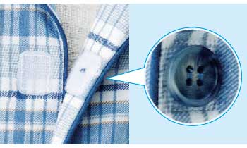 前合わせ+飾りボタン 見た目は普通のパジャマですが…。 着替えや検温時の開閉が簡単です。