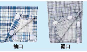 ワンタッチテープの袖口、裾口 ワンタッチテープで開閉がカンタン。 点滴や検温に便利なオープンタイプです。