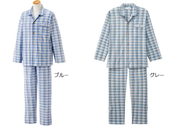 紳士ワンタッチテープ+腰開きパジャマ 通年用 2枚セット 38802 介護パジャマは、着替えやおむつ交換などがしやすい腰開きパンツのパジャマです。 見た目は普通のパジャマですが便利な工夫がいっぱいです。