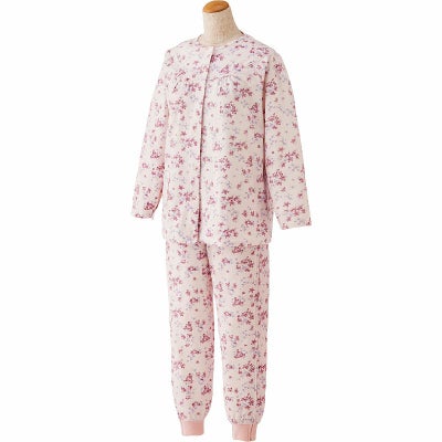 婦人フルオープンパジャマ 通年用 2枚セット 01803 介護パジャマ は、一年を通じて快適に着用していただけるスムース素材を使っています。ご自分で着替えが困難な方をサポートしやすい設計になっているので着替えや検温時の開閉が簡単。飾りボタン付で見た目は普通のパジャマです。