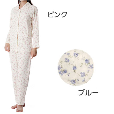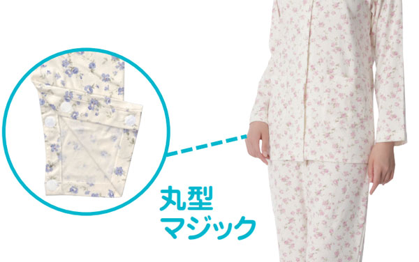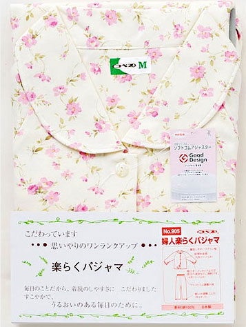 婦人楽らくパジャマ 花柄 No905 袖口丸形マジック付き 通年用