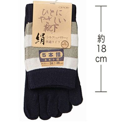 紳士靴下 シルク5本指ソックス ボーダー柄 3枚組