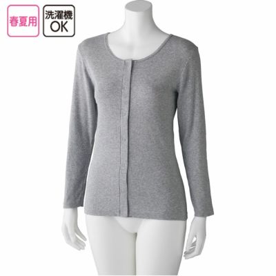 毎日をおしゃれで快適に 保湿成分シアバターを配合し、しっとりとした肌へ。 ナノファイン加工により、衣服に付着した細菌の増殖を99.9%カットします。 ボタンが留めにくい方でもラクにできるプラスチックホックで簡単ですね。 長袖なので春の気候にもピッタリですね。