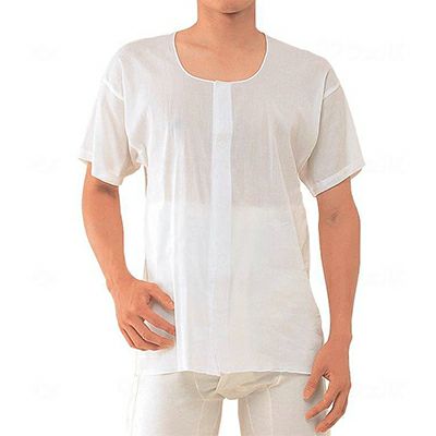 綿100% 日本製 紳士クレープ前開き半袖(CH-1) LL《2枚セット》神戸生絲 ベタつかないクレープ生地 介護用肌着・下着はすずしいクレープ生地を使用した前開きの丸型マジック付きワンタッチ肌着です。