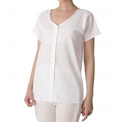綿100% 日本製 婦人クレープ前開き半袖(CH-3) LL《2枚セット》神戸生絲 ベタつかないクレープ生地 介護用肌着・下着はすずしいクレープ生地を使用した前開きの丸型マジック付きワンタッチ肌着です。