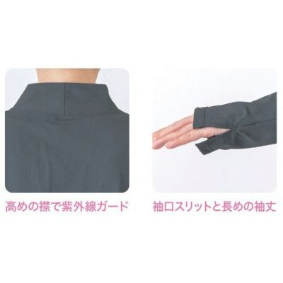 長めの袖丈と高めの襟で、気になる部分を隠して日焼け対策ができます。冷房が効いた社内などでは、冷房対策として着用も可能です。