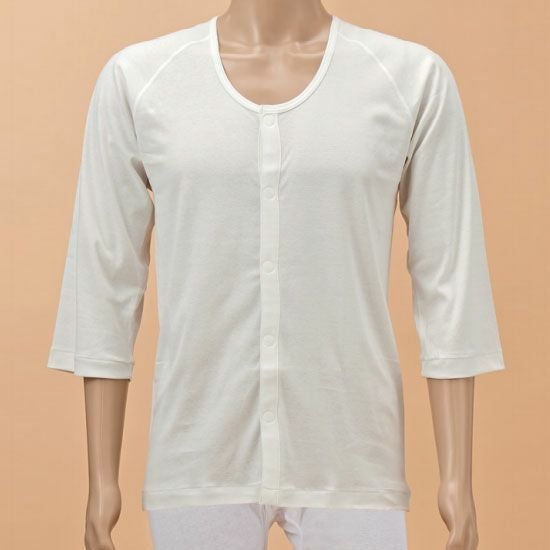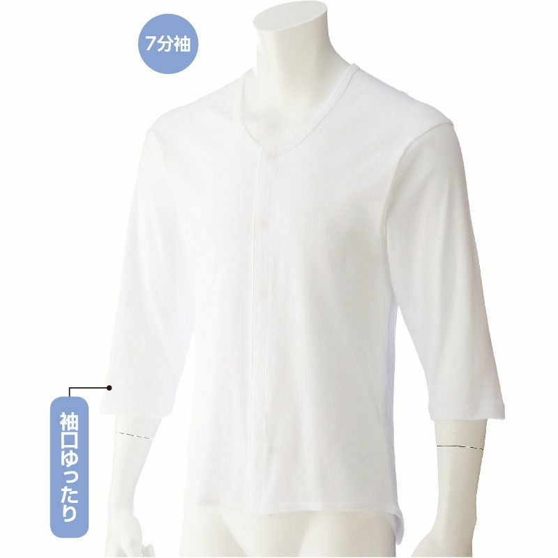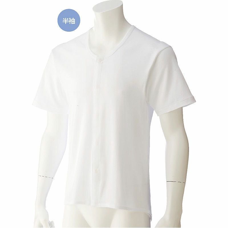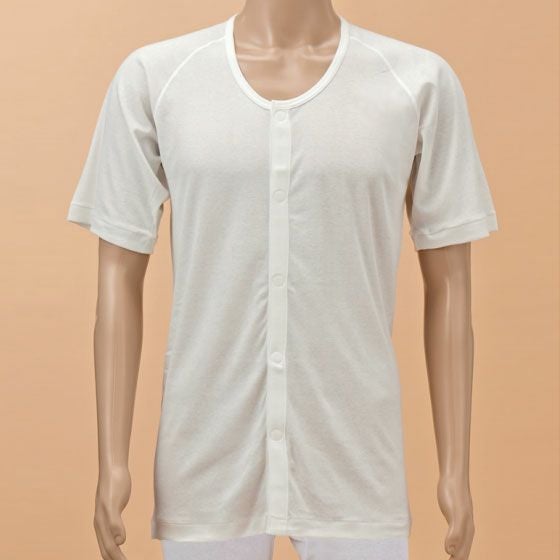 春夏にとても重宝する涼しげな素材感で抗菌防臭。さらに消臭もするので汗をかきやすい人におススメです。3枚セット販売で病院や施設でご使用いただくのにふさわしい肌着です。ボタンがワンタッチテープです。