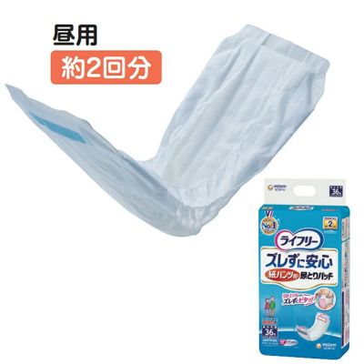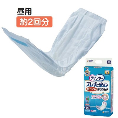 パンツの中でピタッとくっつく!紙をはがす手間のない、何度でも付けはずしできる前後のズレ止めテープ付きはうれしいですね。安心の2回吸収」尿を素早く拡散・吸収するから うすくても安心です。 昼用としておススメしています。 ※1回の排尿量150mlとして(メーカー測定方法によります)